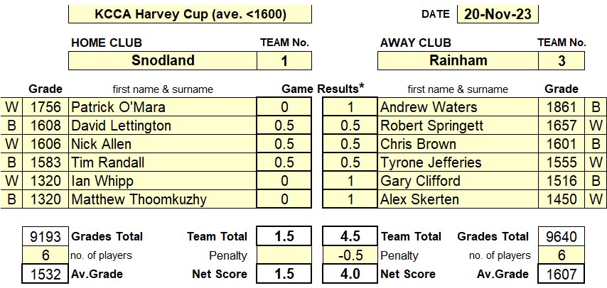 A disappointing start to the season, as a really strong Rainham team well and truly beat Snodland’s Harvey Cup team. However, our two new players, Ian and Matthew fought really hard in their first ever competitive inter-club games.